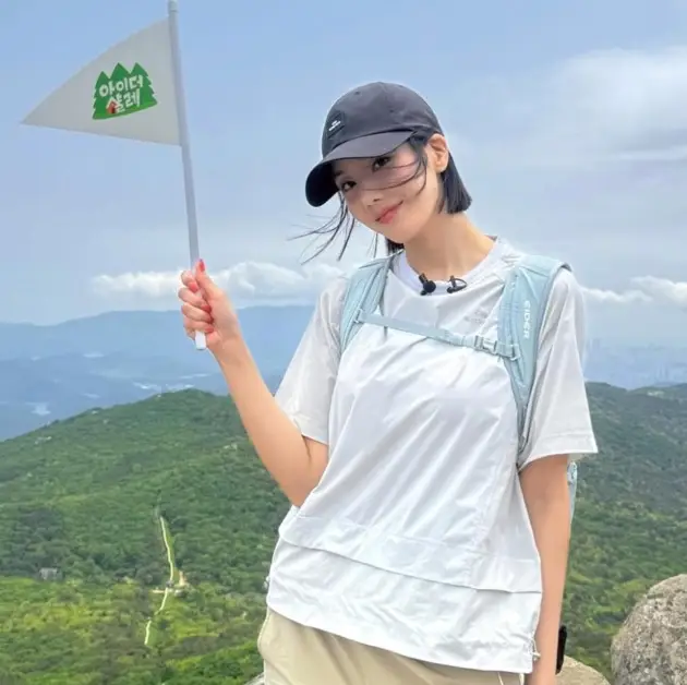 - 권은비는 운동화에 백팩, 캐주얼한 등산복 차림